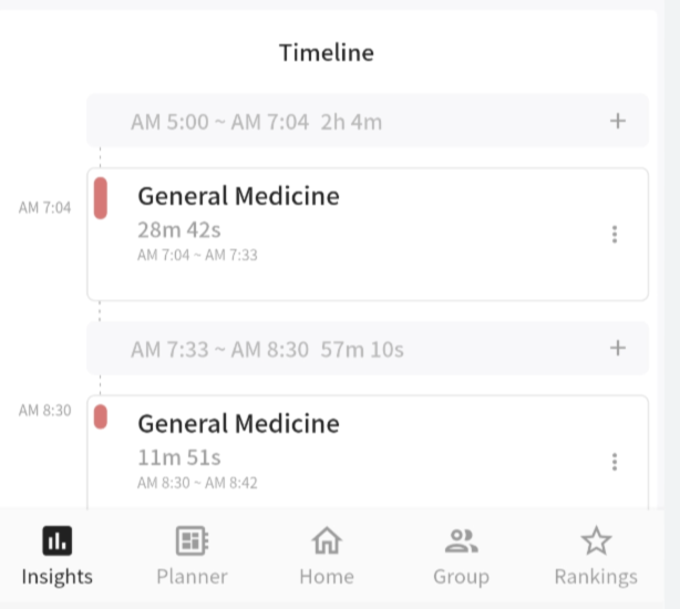 I would live in the todays summary painel If I spend more than 3 minutes outside of a focus session, I would like that time to be registered as a break. This would give me a clearer overall view of my day and help me see if I’m getting distracted during the day.It would be great if it show a timeline with the hours like the image above(taken from Yeolpumta), the grey bars with the times are the breaks. this idea Its similar to YEOLPUMTA app or RIZE app