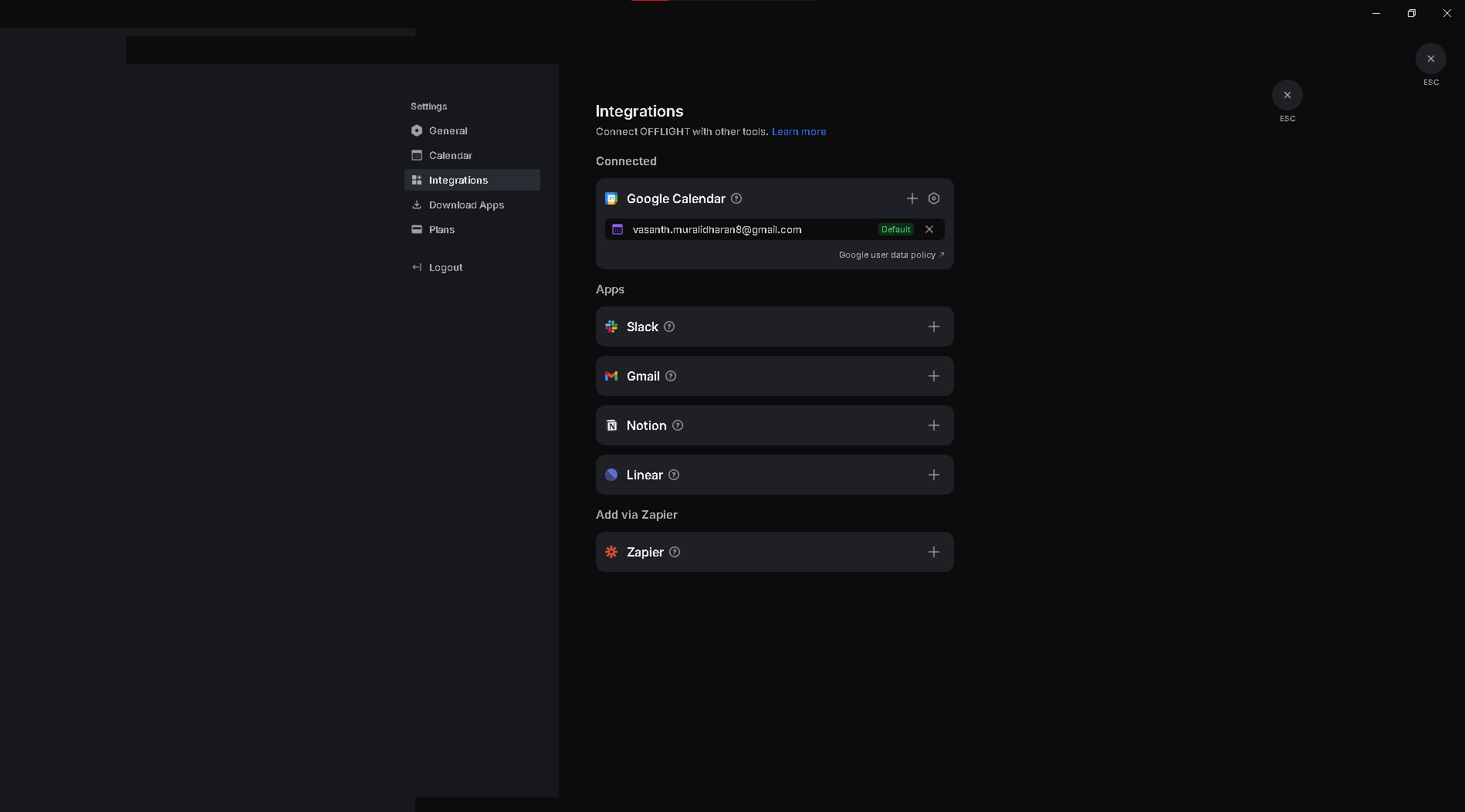 As you can see that in the below screenshot I had luck with only the calendar . If I try to integrate Slack, Gmail, Notion it opens up a minimized same screen after a quick white screen and when clicked plus icon inside this minimized screen again reverts to the maximized screen with all the same options a constant regressive loop.